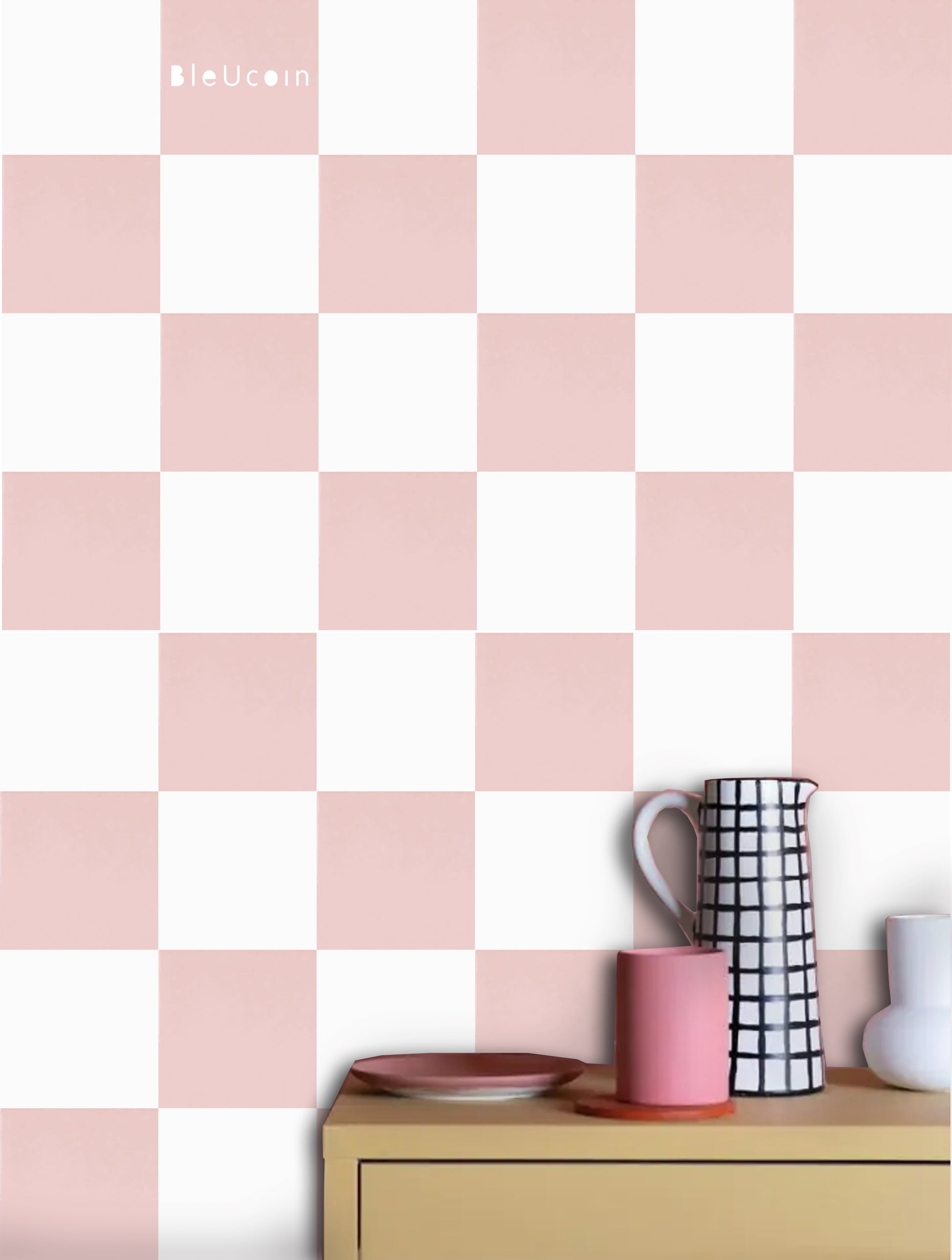 French Rose & off White Checker Peel & Stick Tile